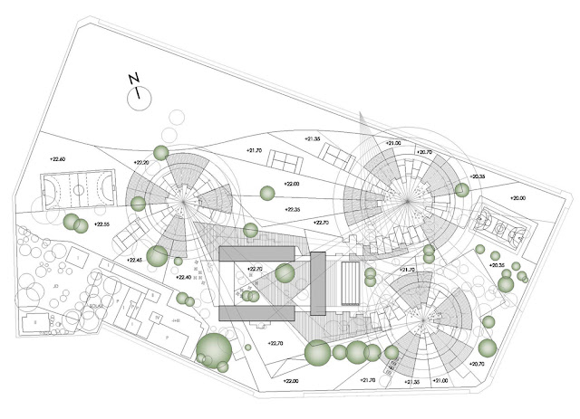 En este proyecto de Sociópolis de la Bienal de Valencia del 2003, que también me envía Sergi, las pistas de atletismo sugieren diferentes recorridos y actúan como elemento unificador del conjunto.